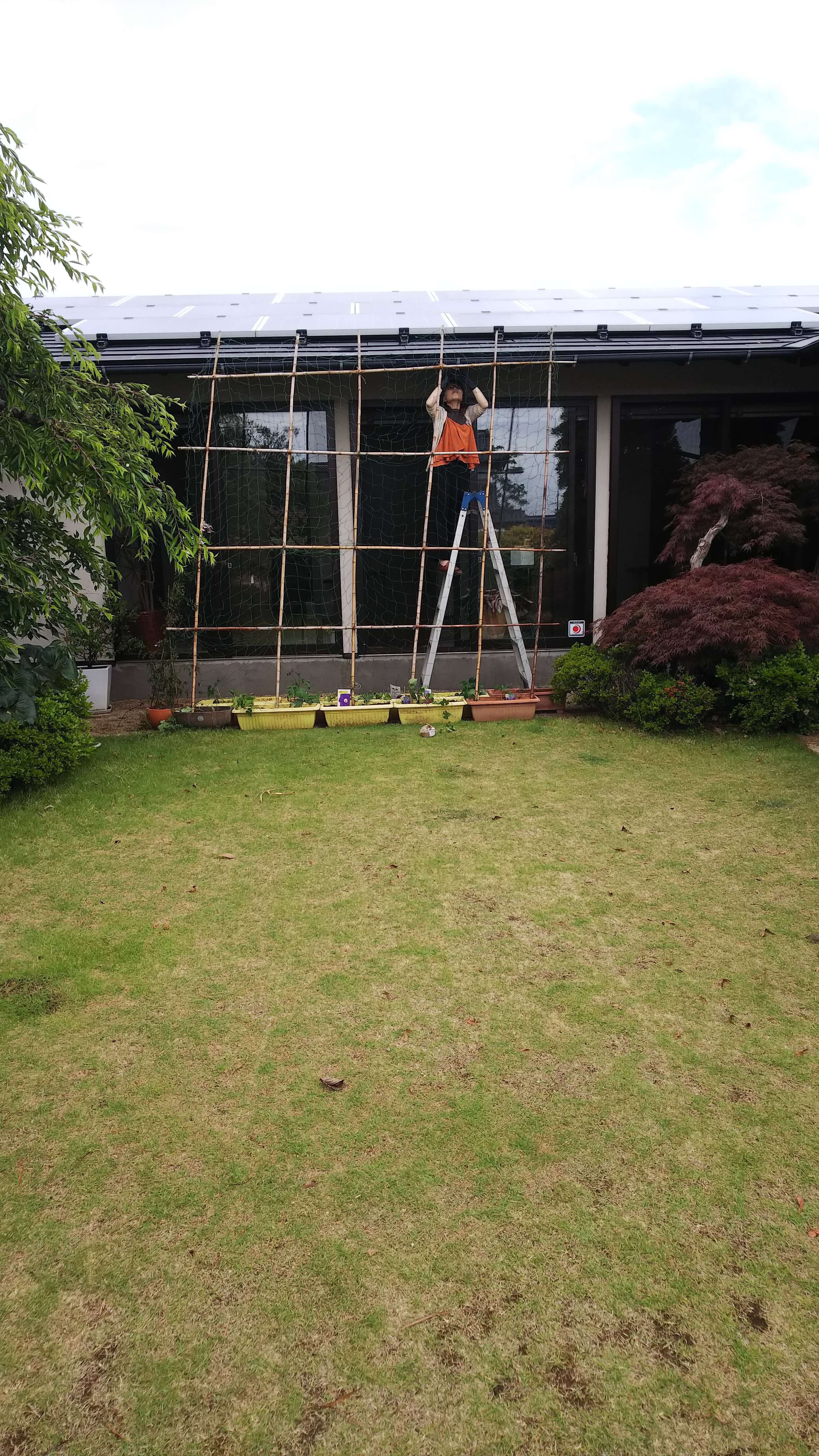 (去年お休みした)お店中庭のグリーンカーテンをつくってます🤗